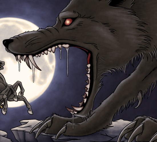 Fenrir fighting Odin.
