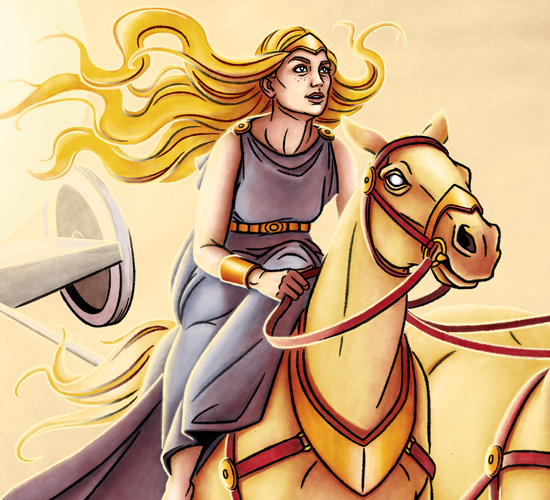 The Sun, riding Árvakur and Alsvinnur.