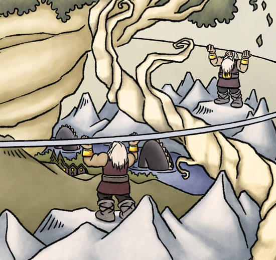 Odin, Vili and Vé set a dwarf at each of the four corners of the world tree to hold the dome of the sky high above the earth.